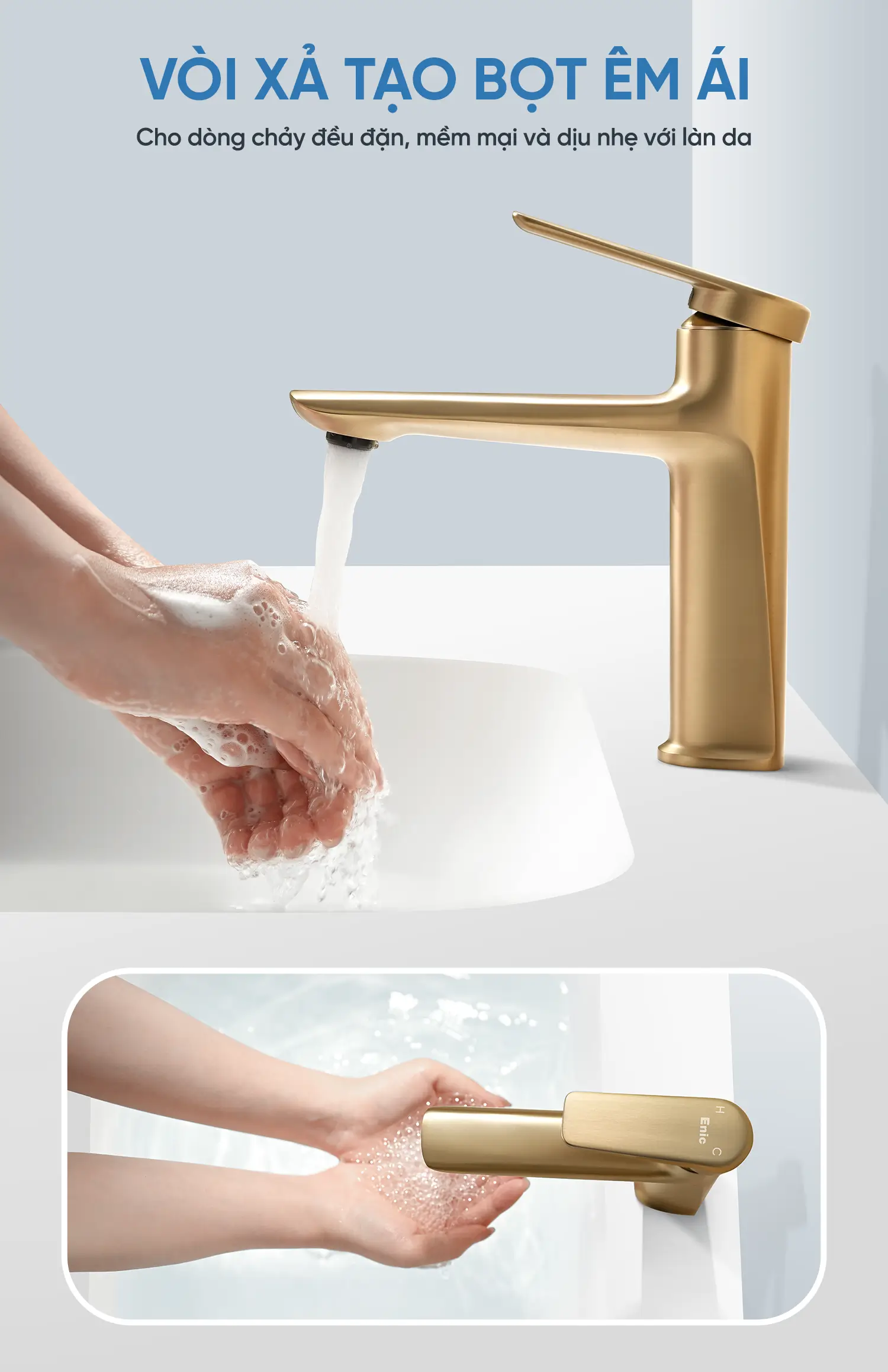có xả tạo bọt, nước k bị bắn tung tóe, êm da