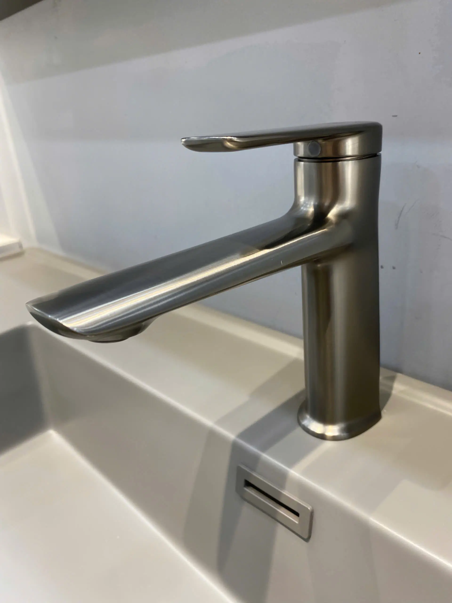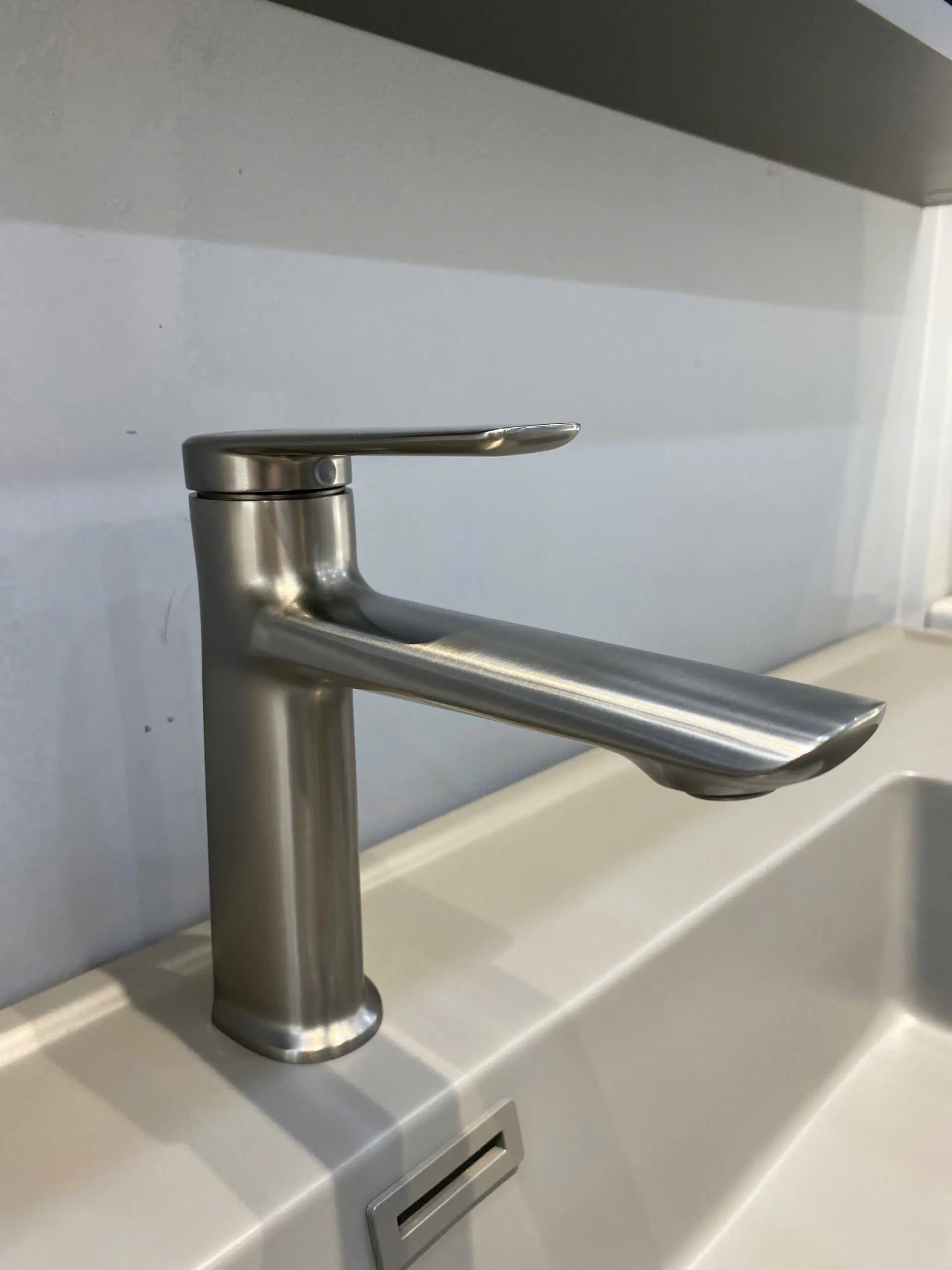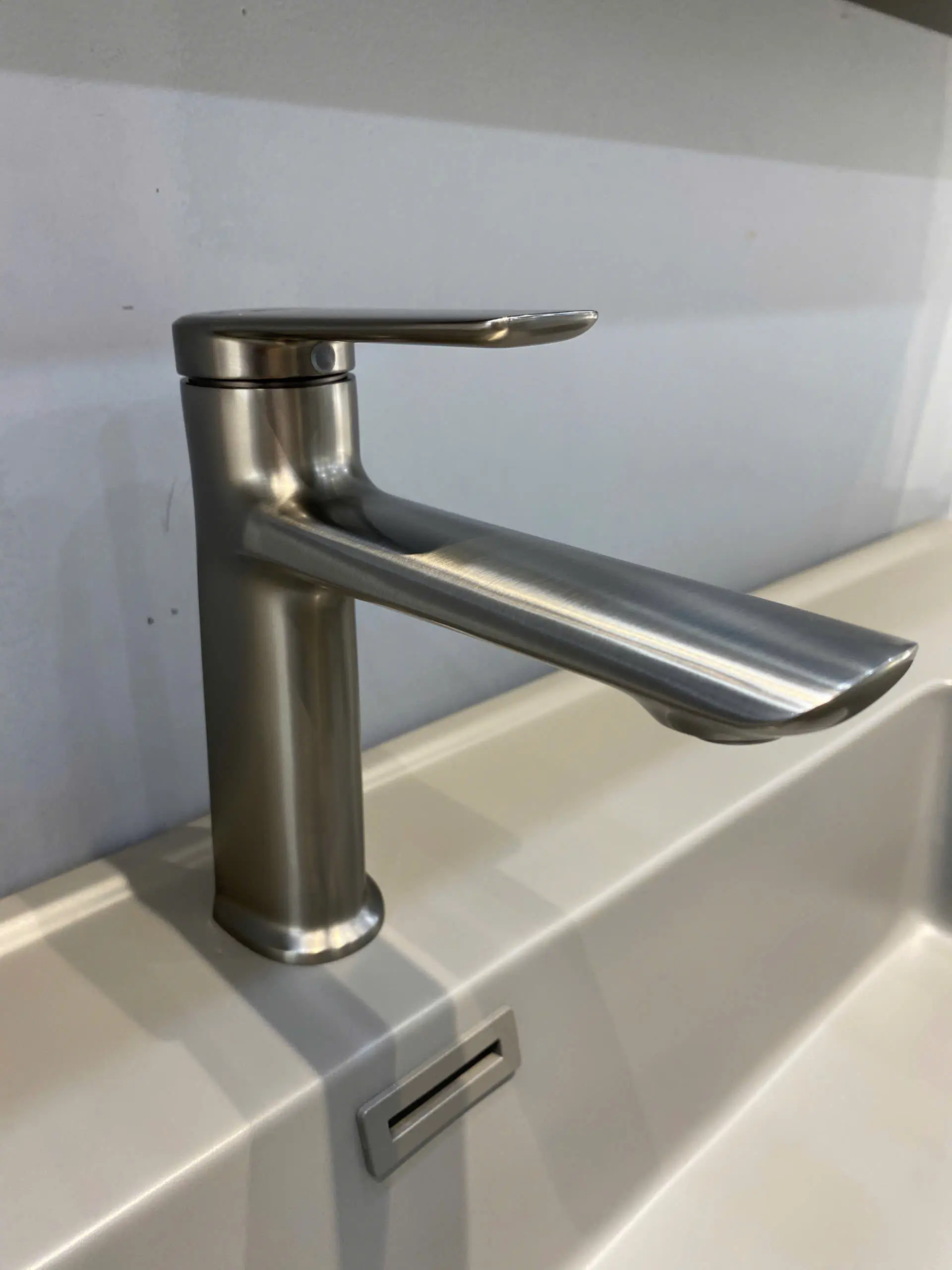 lavabo nhà mình nhỏ, hên sao có cái vòi thân thấp vầy nên mới cân đối, chứ lắp vòi bình thường nhìn kì lắm
