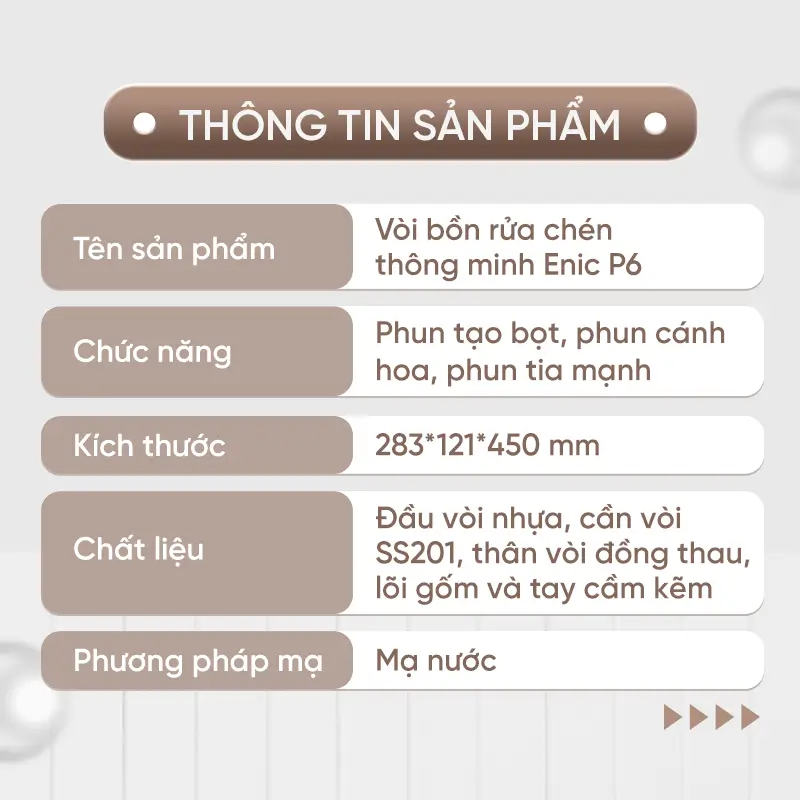 Enic P6 – Vòi rửa bát lý tưởng cho bồn rửa chén nhà bạn, mang đến sự đồng bộ hoàn hảo cho gian bếp. An tâm với chính sách bảo hành 2 năm, 1 đổi 1 trong 100 ngày và vận chuyển miễn phí toàn quốc. Liên hệ Enic ngay hôm nay để sở hữu sản phẩm chất lượng cùng nhiều ưu đãi hấp dẫn!
