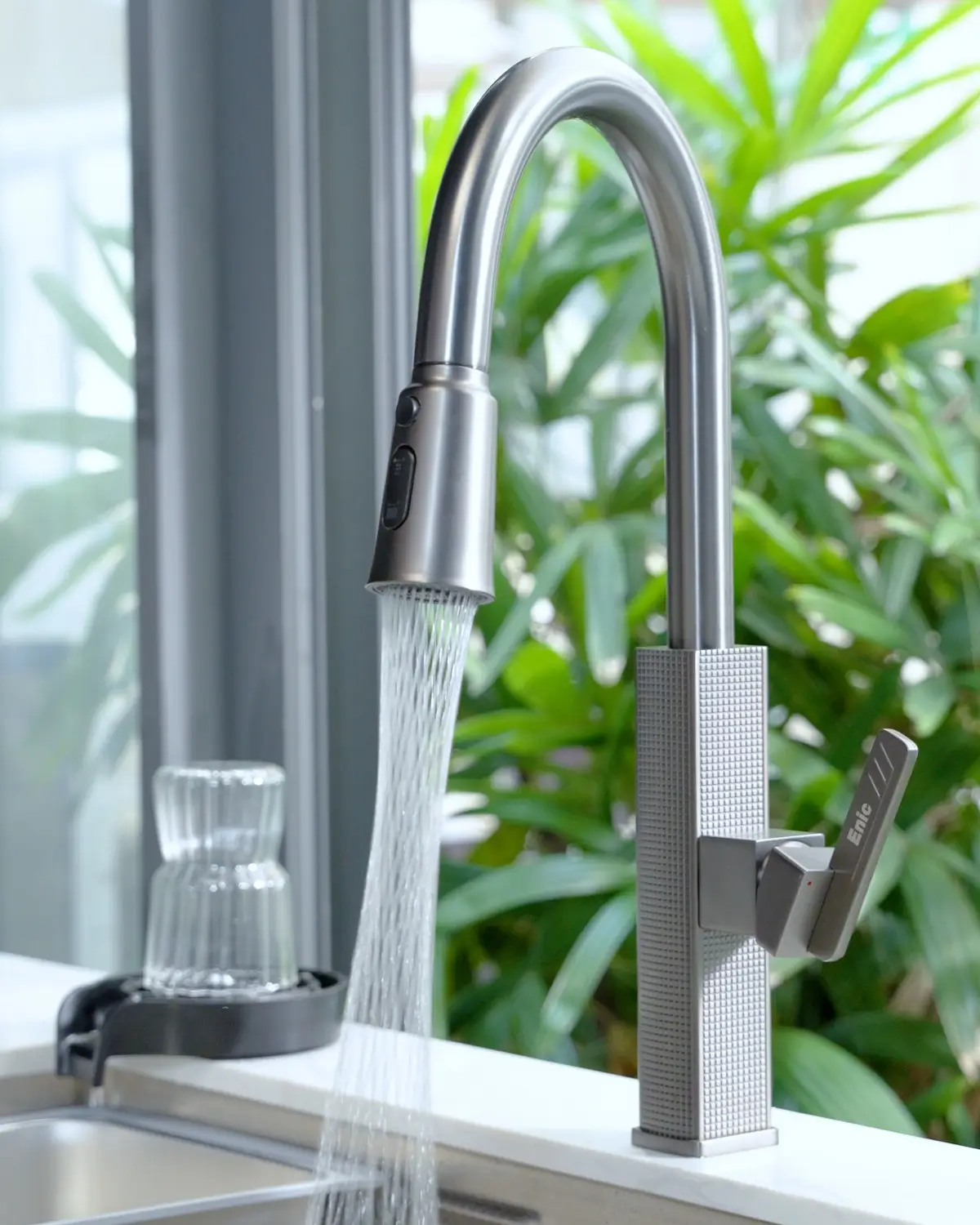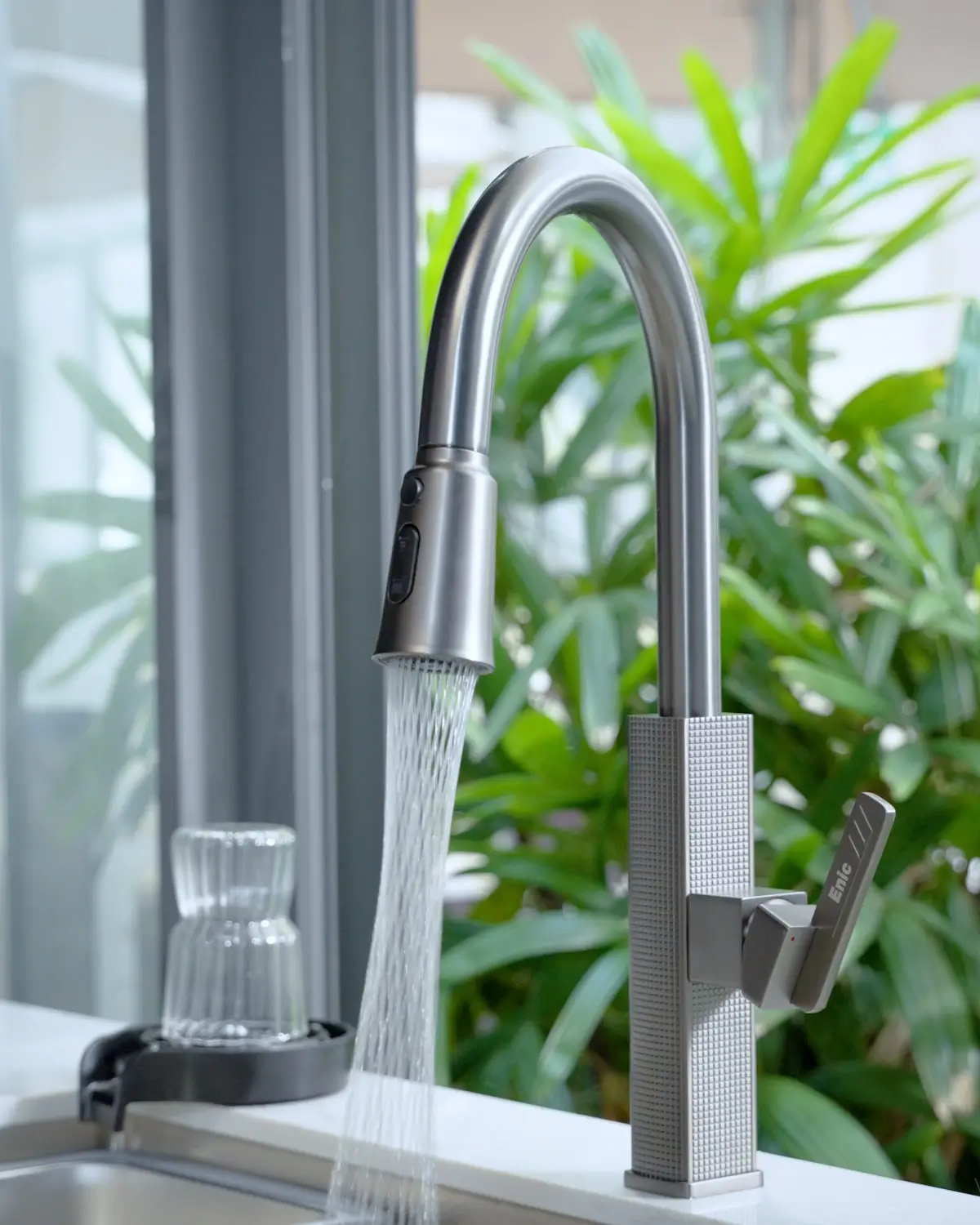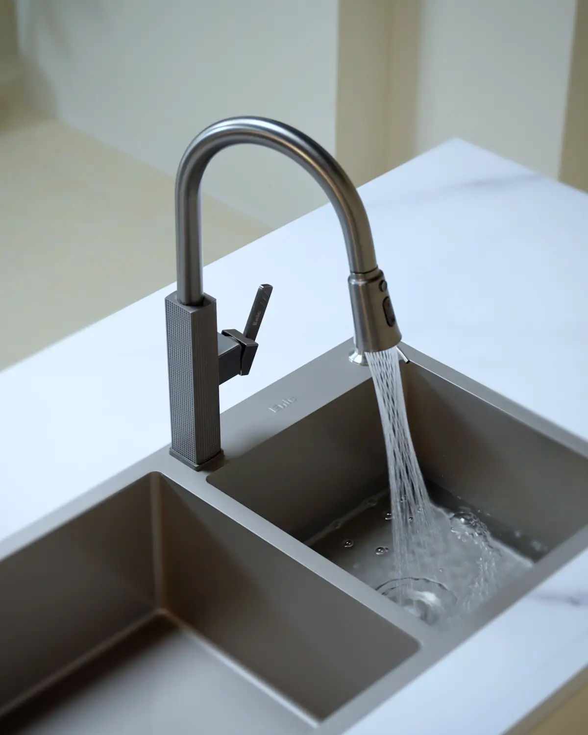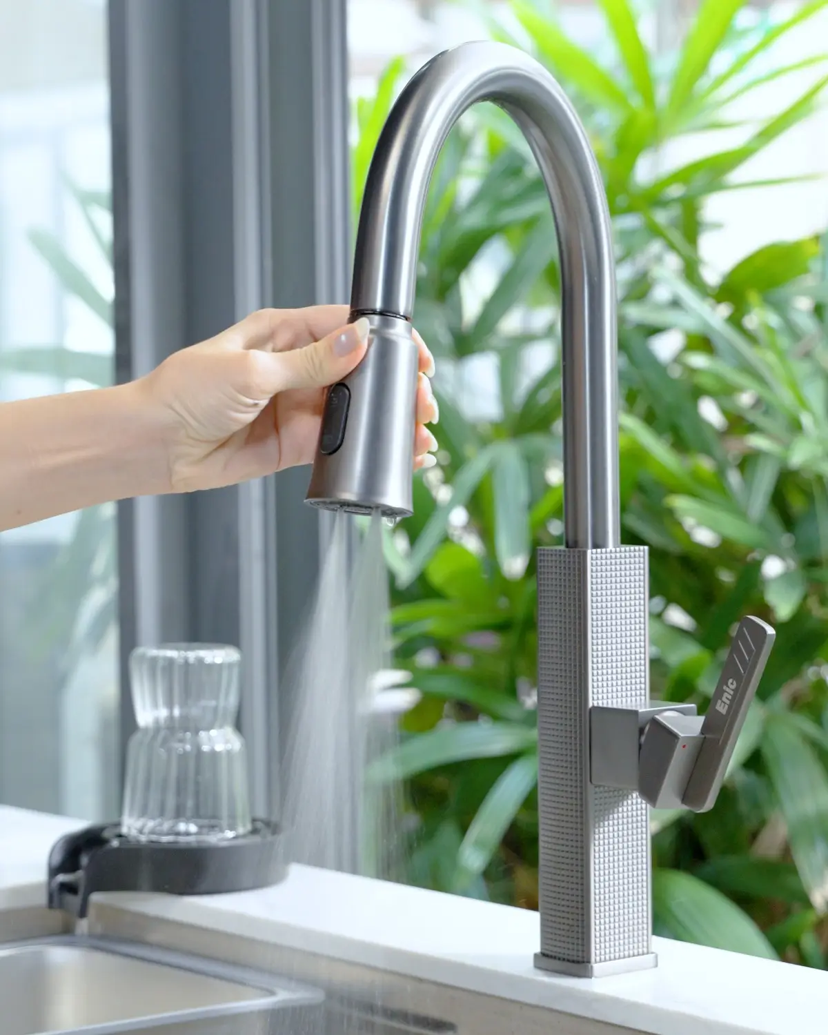 Vòi rửa bát nóng lạnh vòi rút xoay Enic P6 điều chỉnh nước nóng – lạnh linh hoạt, mang lại trải nghiệm sử dụng đa dạng. Điểm nổi bật của Enic P6 là vòi dây rút dài 58cm với 3 chế độ phun: tia mạnh, cánh hoa và tạo bọt. Thiết kế xoay 360 độ giúp tiếp cận mọi góc bồn rửa dễ dàng.