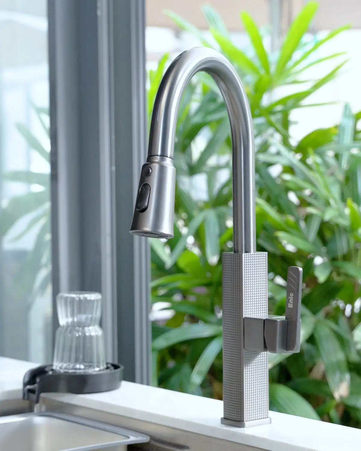 Vòi rửa bát nóng lạnh đầu rút xoay Enic P6