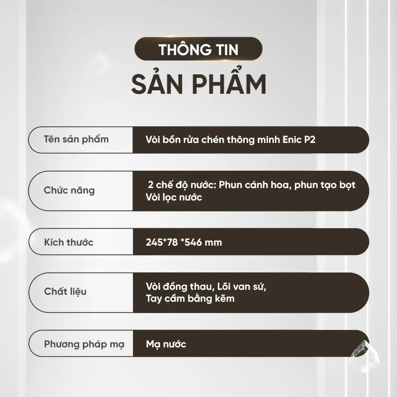 Biến công việc bếp núc trở nên thú vị hơn với Enic P2, thiết bị không thể thiếu cho bồn rửa chén. Hãy liên hệ với Enic ngay để được giải đáp mọi thắc mắc về sản phẩm!