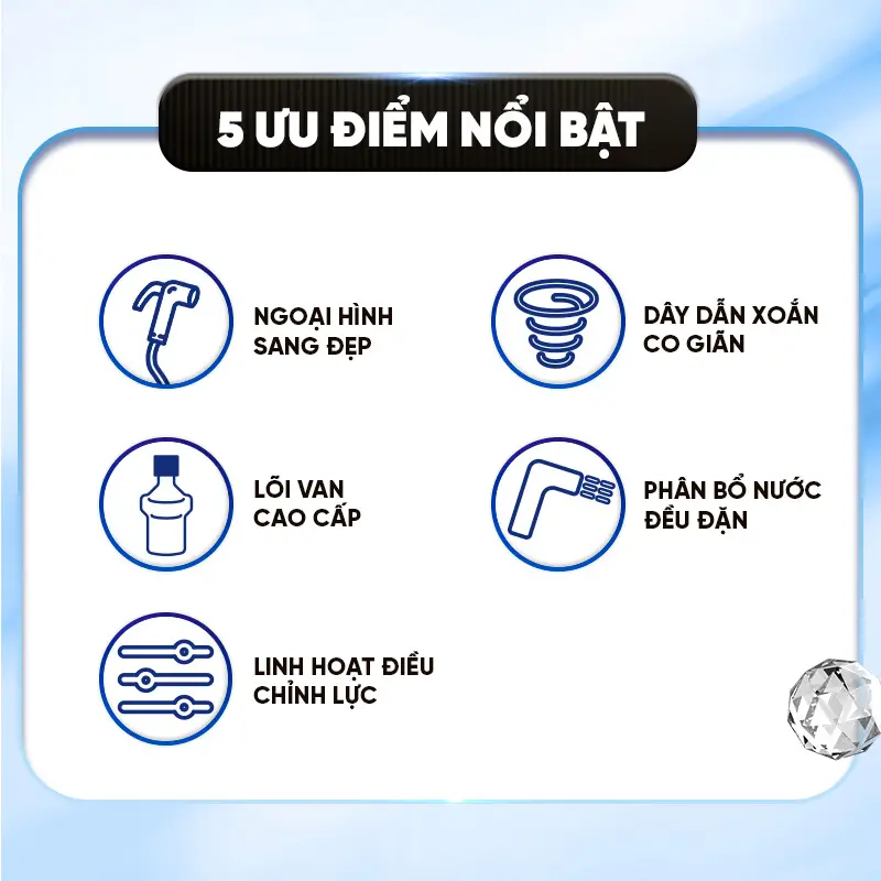 - Lõi van cao cấp: Người dùng an tâm và tin tưởng sử dụng vòi xịt bồn cầu