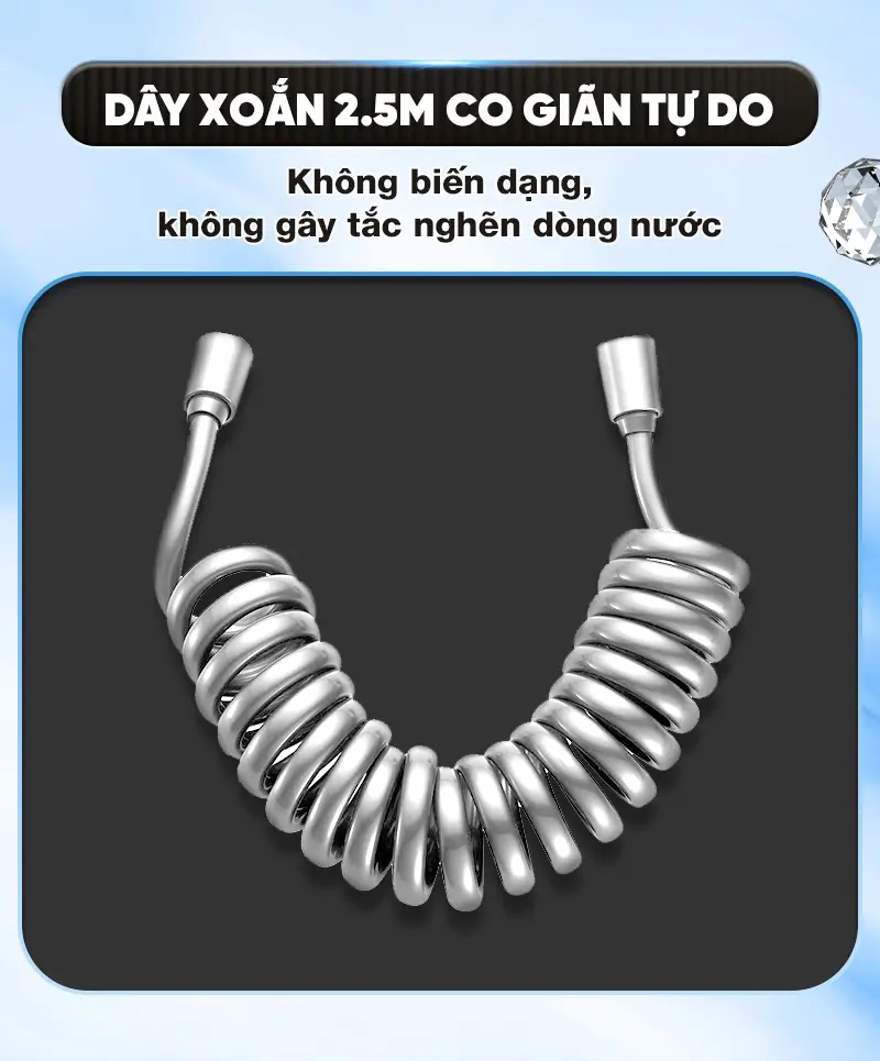 - Dây dẫn xoắn co giãn: Nhựa PU dài 2m, dễ dàng vệ sinh mọi ngóc ngách